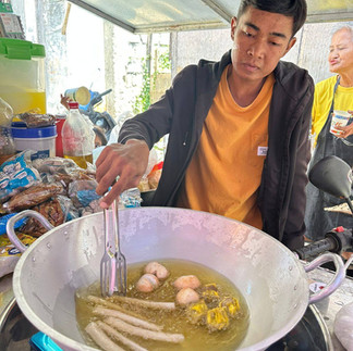 We purchased this lovely little food cart, stocked it with all the necessary ingredients, and our team even prepared the sauces so he could start selling right away. In true KOMA style, we surprised him completely — and we were proud to be his very first customers!